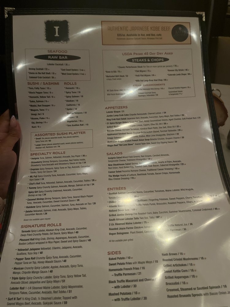 Insignia Prime Steak & Sushi Menu (Update 2025)